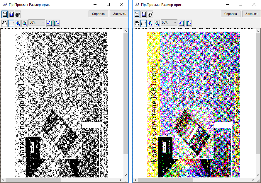 Вот пример печати с установками по умолчанию, вверху оригинал, внизу результат печати с него.