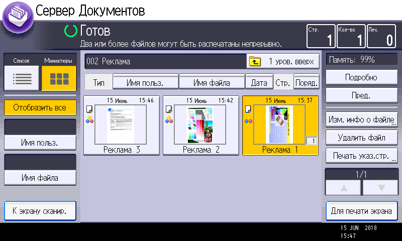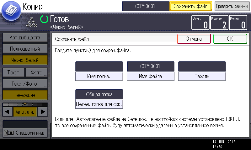 Для работы с USB-флешек задавалось сохранение в виде многостраничного PDF-файла, время замерялось от нажатия кнопки «Пуск» до появления сообщения об окончании записи файла, при сканировании с компьютера — от старта кнопкой приложения до появления последней страницы в его окне. Поскольку установки «Тип оригинала», как на панели управления МФУ, в драйвере нет, использовались наиболее близкие параметры, они указаны в скобках.