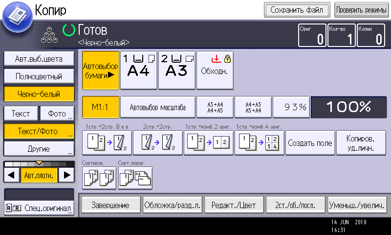 Не предлагают экономить и на важных удобствах: аппарат в базовой поставке имеет три лотка, включая два выдвижных и обходной, и большой цветной ЖК-экран с диагональю 9″. Отсутствуют только не самые востребованные возможности и опции вроде встроенного браузера, сохранения сканов в формате PDF с возможностью поиска, финишных устройств и функции факса.