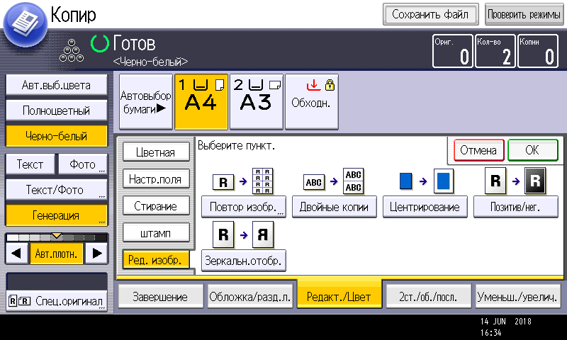 | Поддерживаемые форматы носителей | А3, SRA4, A4, A5, А6, B5, B6 (SRA3 — опция) конверты DL, C5, C6 |