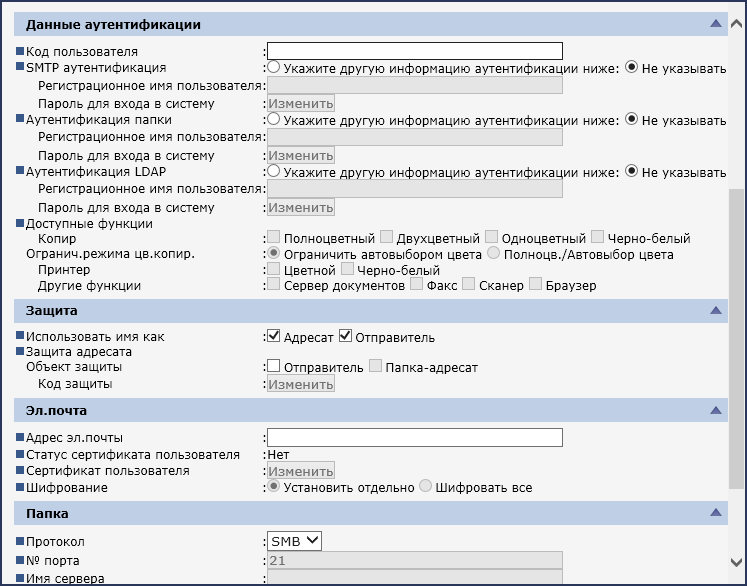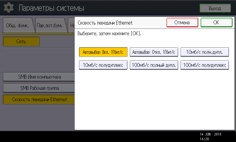 | Режим | Установки (в скобках для TWAIN) | USB-флешка | LAN (1 Гбит/с) | ||