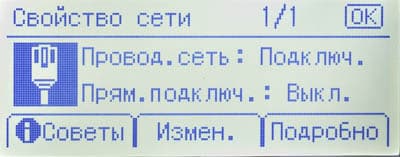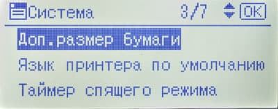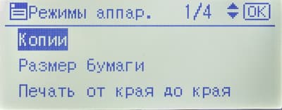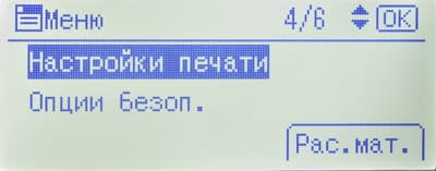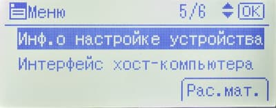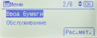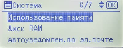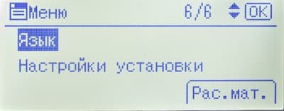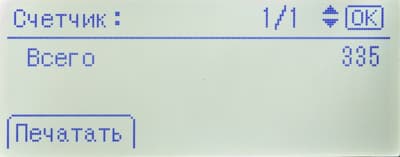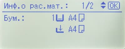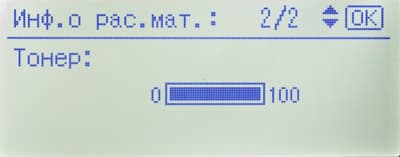 Среди прочего в меню есть страница состояния расходных материалов (но информации там немногим больше, чем на странице готовности) и счетчик (у него единственное значение: общее количество отпечатков).