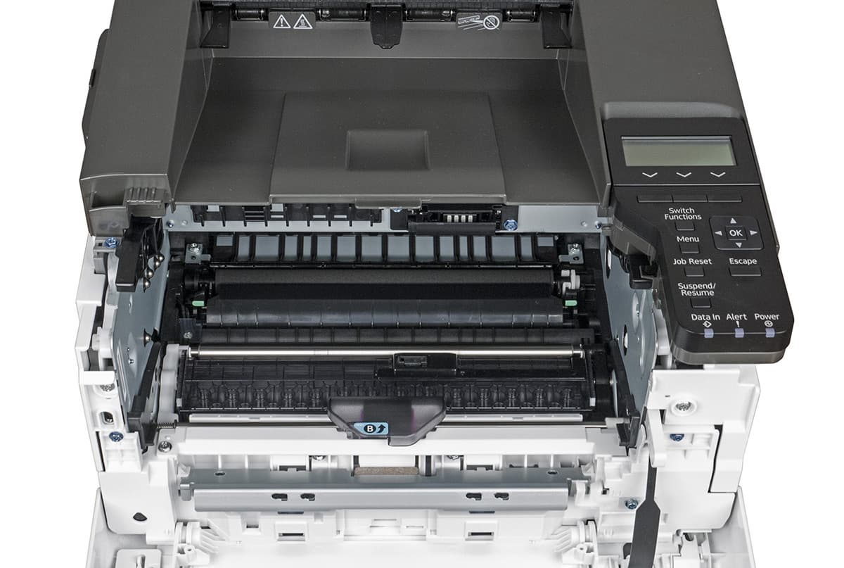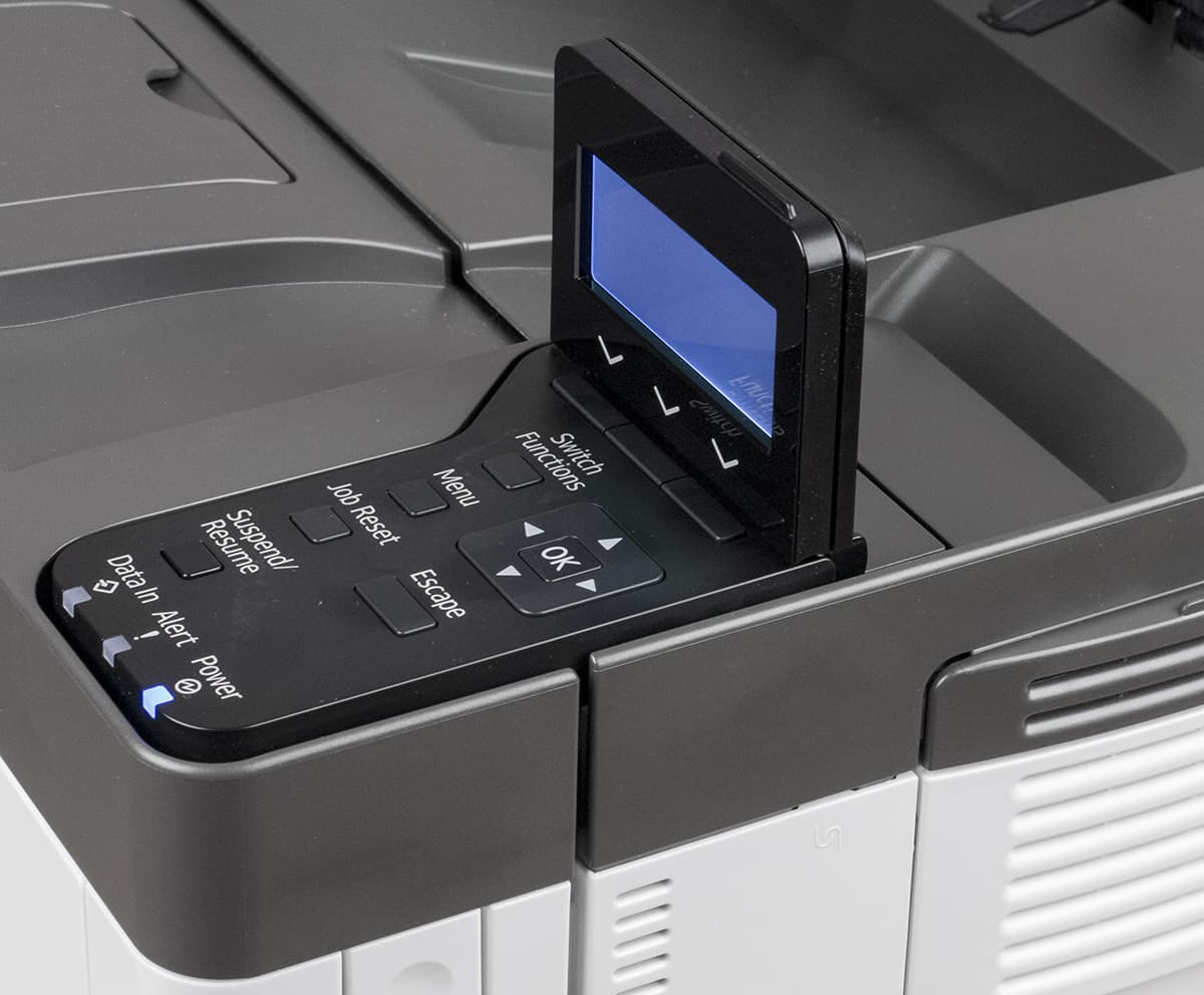 Во время работы проявляется другой источник шума, на этот раз довольно заметного: нижний подающий лоток оснащен микролифтом, поднимающим переднюю кромку стопки бумаги перед печатью и опускающим ее после выполнения задания, чтобы можно было безопасно выдвинуть лоток. Это сопровождается кратковременным, но довольно громким и хорошо заметным ревущим звуком.