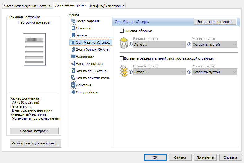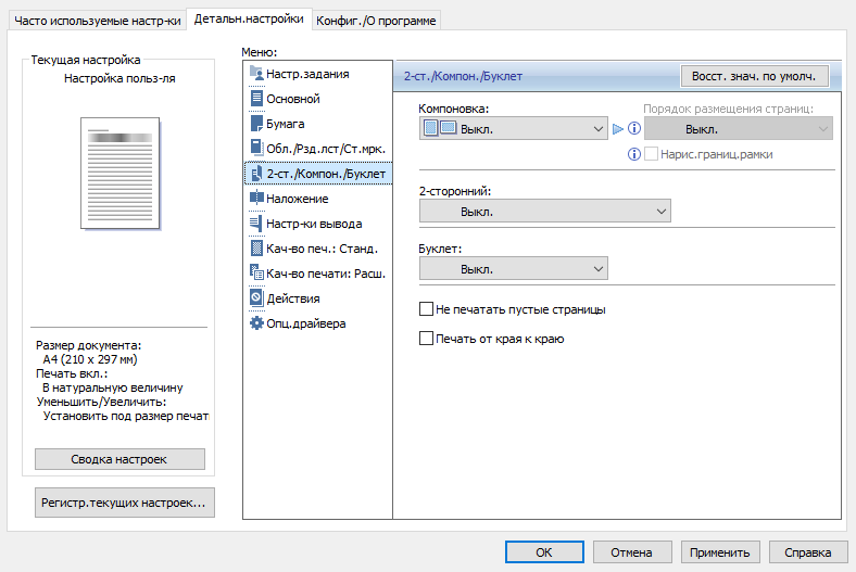 Сначала немного об установке «Печать от края к краю», которая доступна и из драйвера.