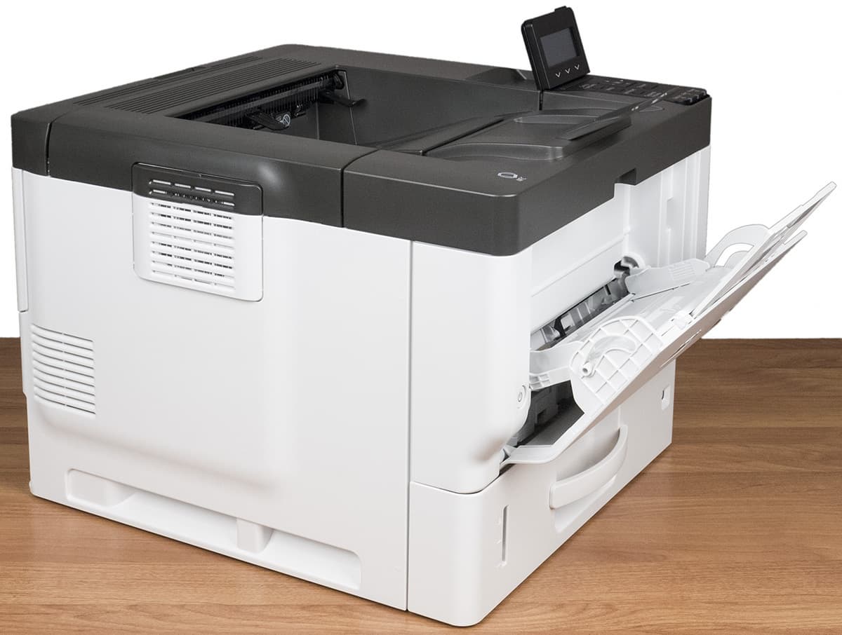 Относительно подающих лотков в официальных материалах не все понятно сразу. Так, на русскоязычной странице сайта компании указано «Запас бумаги: станд. — 500 листов» без уточнения, какая именно бумага имеется в виду и сколько вмещает каждый из двух штатных лотков. В таблице мы привели данные для обоих этих лотков из инструкции пользователя, но там есть пометка: это для «Обычная бумага 1», а такая установка подразумевает диапазон от 66 до 74 г/м², то есть плотность ниже, чем у наиболее распространенной в России офисной бумаги 80 г/м², которой должно помещаться немного поменьше.