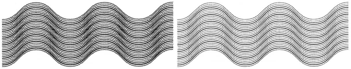 При печати тестовой полосы разницу в качестве печати с установками 600 и 1200 dpi вновь нельзя назвать сколько-нибудь существенной, хотя в первом случае изображение выглядит немного более контрастным. Один из немногих участков, где высокое разрешение дает заметный эффект, это поля с тонкими линиями, особенно волнистыми: с меньшим разрешением они получаются толще, порой настолько, что кое-где смыкаются.