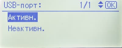 После первого включения питания можно выбрать язык меню (русский также доступен), в это время происходит первоначальная подкачка тонера, занимающая менее минуты.