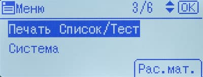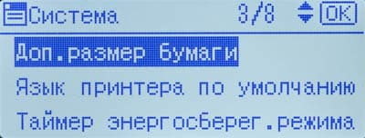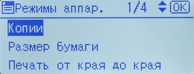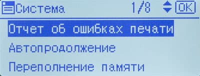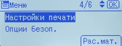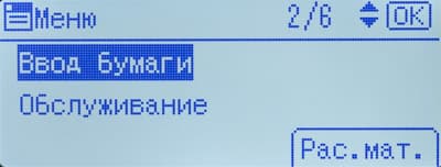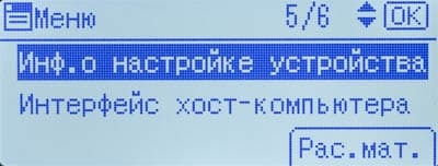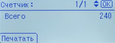 Среди прочего в меню есть страница состояния расходных материалов (но информации там немногим больше, чем на странице готовности) и счетчик (у него единственное значение: общее количество отпечатков).