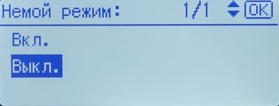 Включение «немого» (тихого) режима шумность уменьшает заметно, однако ценой почти двукратного снижения скорости печати.