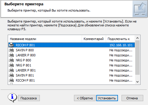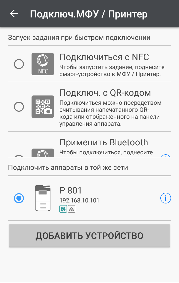 Как обычно, после установки приложения следует «прописать» в нем принтер, для чего предусмотрено несколько способов, но не все они реализуемы с конкретным печатающим устройством.