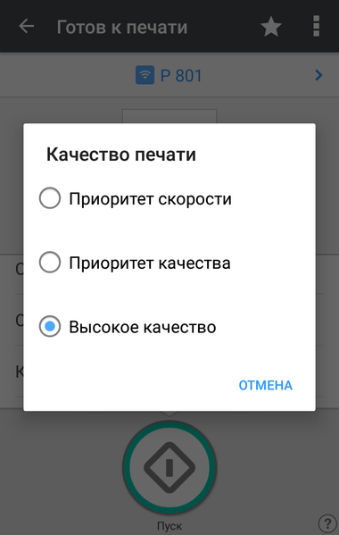 Поскольку поддержка NFC есть не в каждом современном мобильном гаджете, мы все же опробовали другой вариант — с QR-кодом, который распечатывается на листе бумаги из меню принтера («Интерфейс хост-компьютера — Smart Device Connector — Печать QR-кода»).