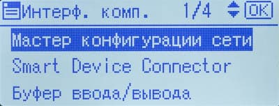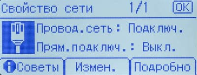Кроме того, в верхней строчке экрана выводятся сообщения о состоянии — например, «Готов», «Печать...» или «Невозможна связь DHCP с сервером».