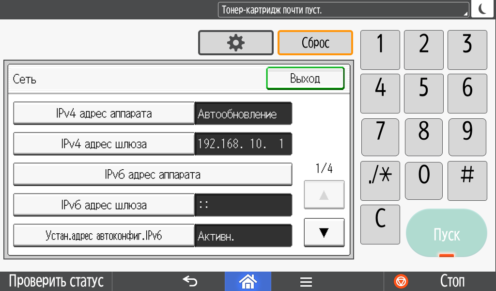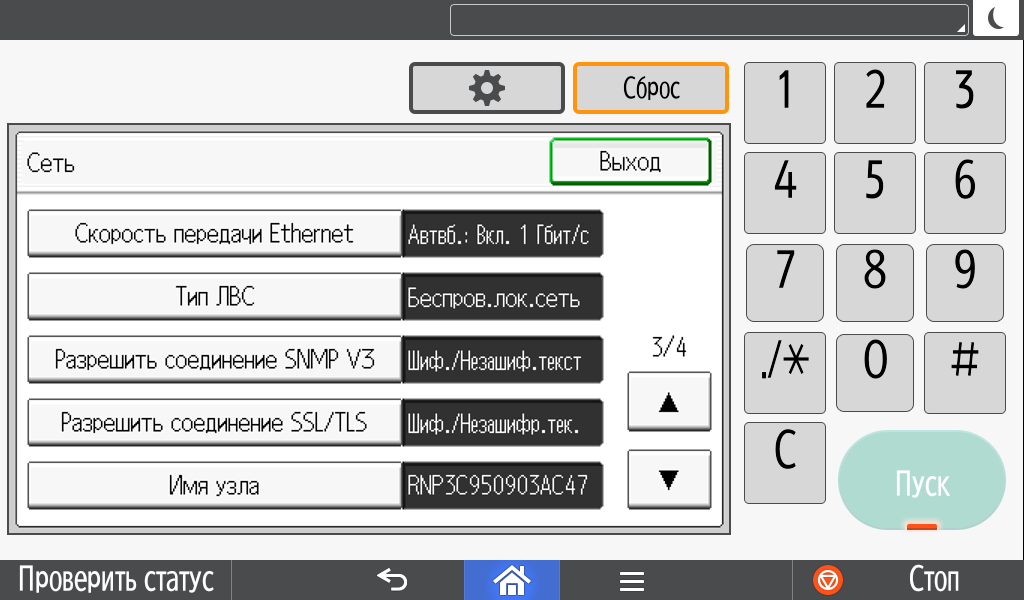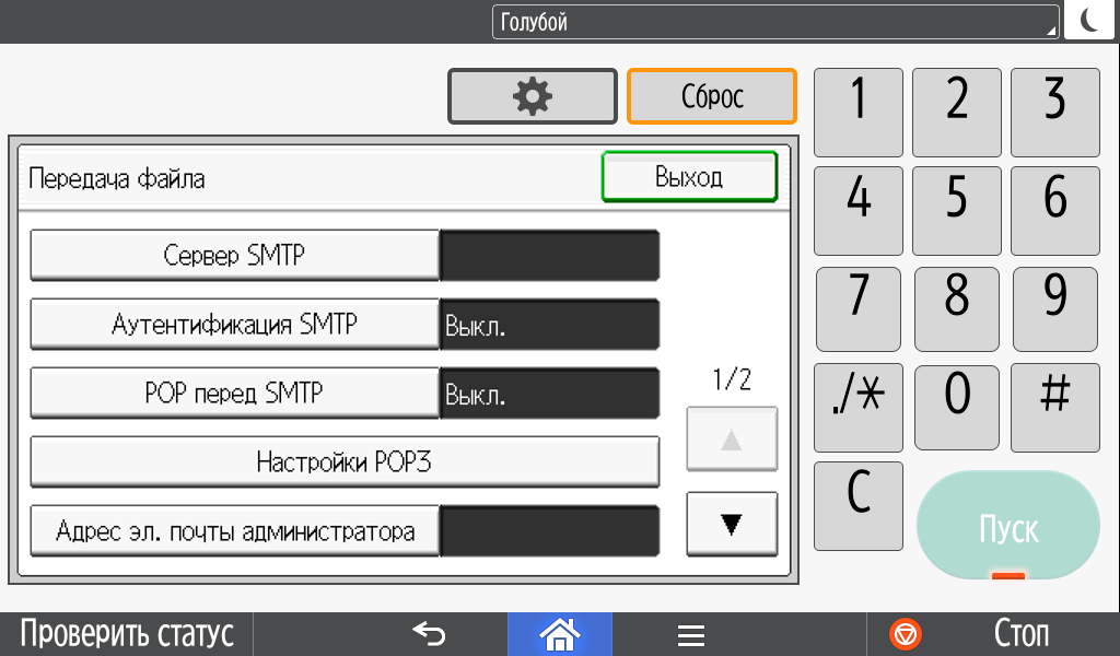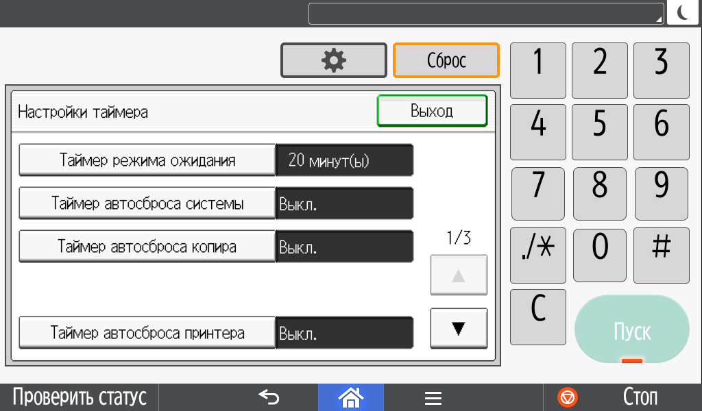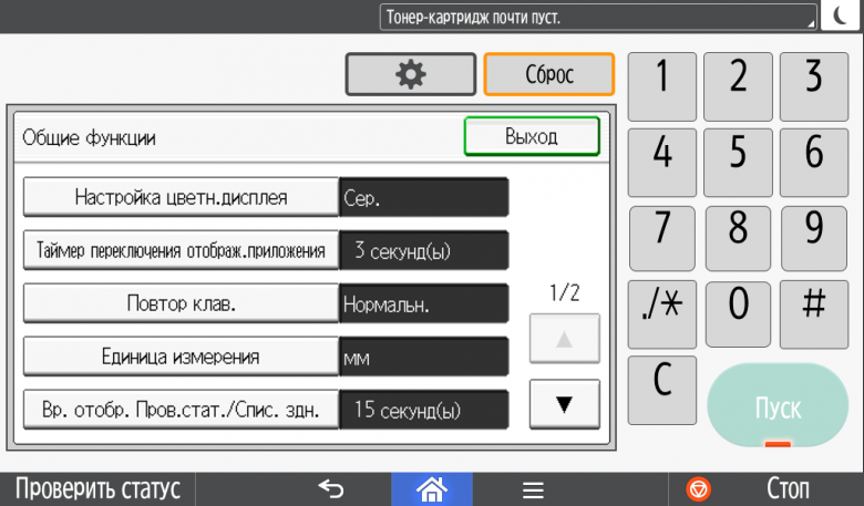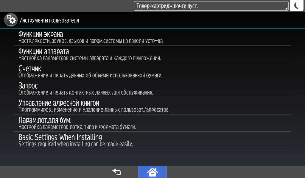Некоторые системные настройки отрабатываются не сразу, а после перезапуска (выключения-включения) МФУ.