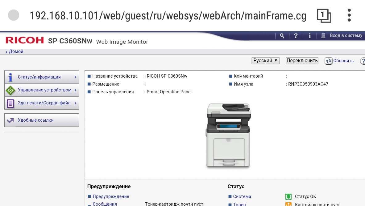 МФУ Ricoh SP C360SNw предоставлено на тест производителем