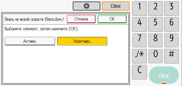 Ее следует активировать при плохом закреплении тонера на такой бумаге, но даже если этого не сделать, печать на плотных сортах бумаги при соответствующем указании типа носителя в настройках становится ощутимо медленнее.