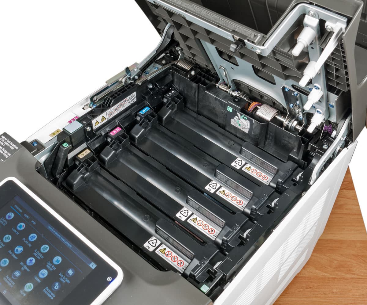 Блоки барабана рассчитаны на разное количество отпечатков: для черного цвета на 15 тысяч, для CMY — на 12 тысяч.