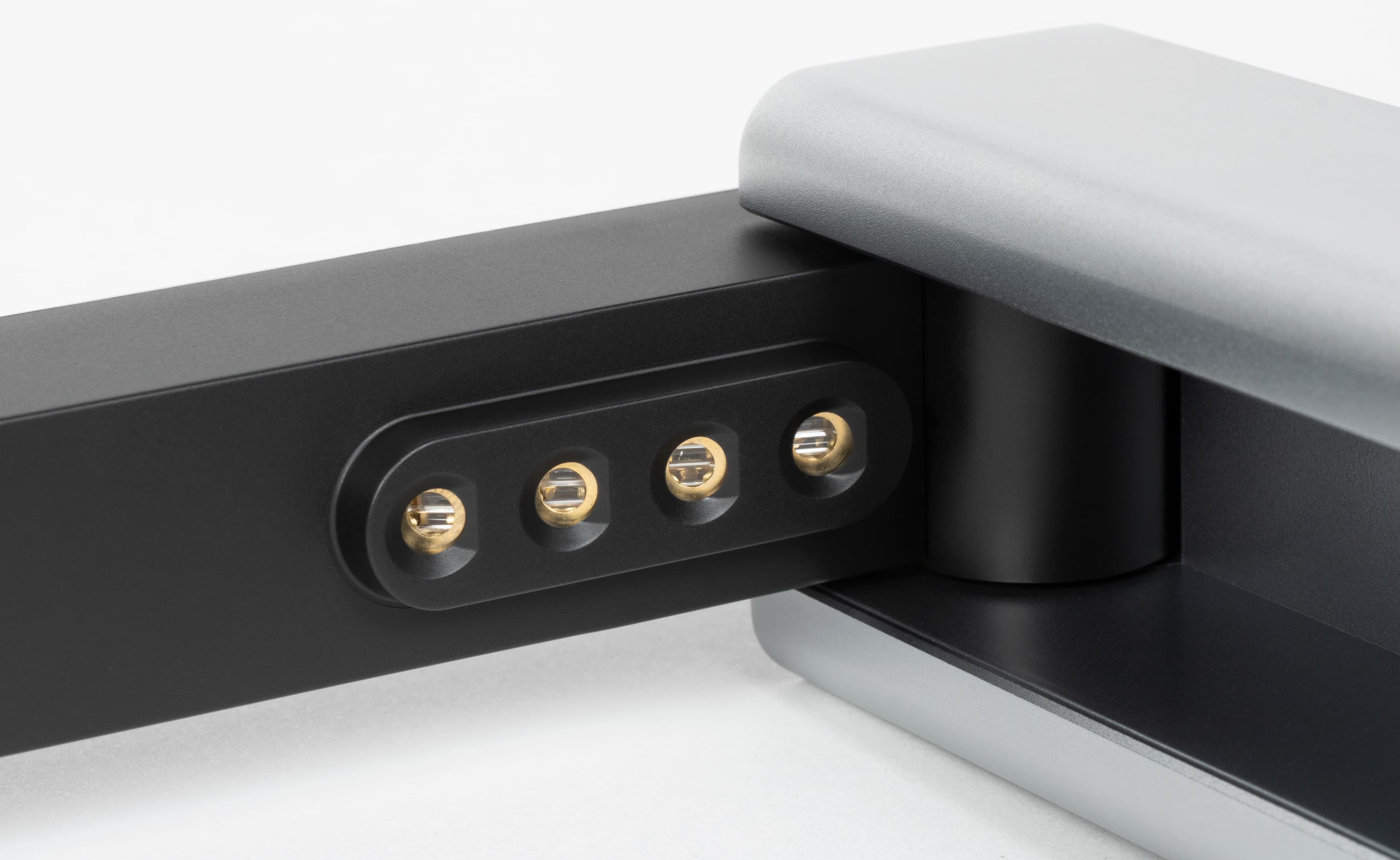 На заднем торце основания расположены разъемы: USB-A для подключения кнопки или педали, дублирующих центральную кнопку, USB-B для подключения к компьютеру, гнездо дополнительного питания и отверстие кенсингтонского замка.
