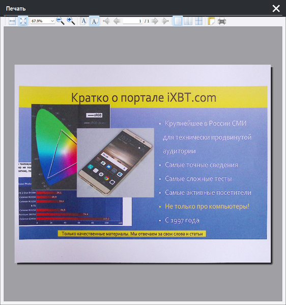Поэтому относительно фотоизображений придется подтвердить сказанное выше: качество сканов, сделанных с помощью ScanBook Home A3, можно назвать лишь ознакомительным. Правда, то же относится и к очень многим аналогам: всё же они предназначены для обработки документов, а не фотографий.