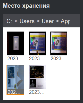 По умолчанию файлы сохраняются в папке ScanBook, глубоко «закопанной» в директории текущего пользователя, поэтому можно сразу назначить более доступное место. Однако есть и другой способ добраться до них: в процессе работы постоянно создаются вложенные папки, именование которых включает текущую дату (это можно отменить, см. скриншот чуть выше); эти папки отображаются в окне «Обработка» справа внизу в виде иконок, клик по которым сначала выдаст предупреждение «Временные файлы будут удалены. Перейти в новую папку? (Да/Нет)», что означает удаление несохраненных результатов обработки снимков, сделанных в текущем сеансе. Если согласиться, получим набор сканов из выбранной папки.