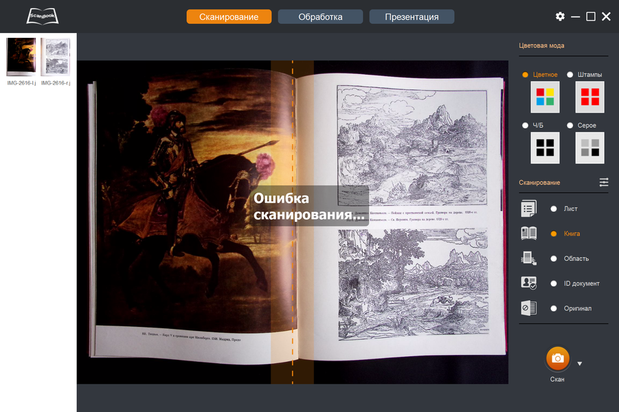 С некоторыми разворотами книг может возникать ошибка сканирования с выдачей соответствующего сообщения: