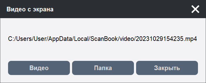 Соответственно можно посмотреть полученное видео, перейти в папку, где расположен сохраненный видеофайл или закрыть это окно.