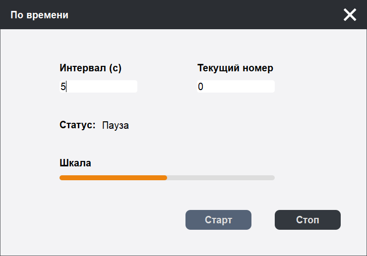 Второй автоматический режим подразумевает срабатывание по времени: появляется аналогичное окно, в котором можно задать интервал в секундах (минимум одна), по истечении которого делается снимок. И тут уже расслабляться нельзя: не успел перевернуть страницу — очередной кадр будет испорчен.