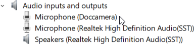 Кстати, «Диспетчер устройств» позволит проверить наличие компонентов, помеченных в описании как «доп.»: мы убедились, что наш сканер укомплектован микрофоном — при подключении появляется «Microphone (Doccamera)», но не имеет динамика — новых устройств подобного типа в перечне нет.