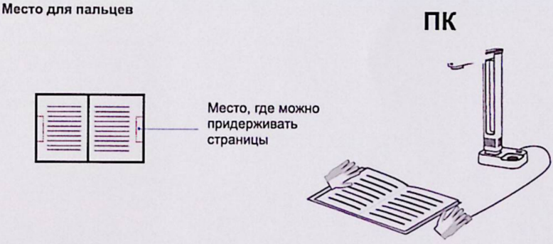 Для оригинала-книги можно задать удаление пустых страниц и обрезку по внешнему контуру (точно так, как мы видели выше для оригинала «Лист») — то и другое действительно работает. А вот работу пункта «Чехлы для пальцев», который по идее должен устранять с изображения придерживающие страницы пальцы в этих самых чехлах-колпачках, мы долго пытались увидеть, в результате выяснили: автоматического удаление действительно происходит, но палец в чехле должен находится в строго определенных областях — возле левого или правого края разворота, но не близко к углам, да к тому же заходить лишь на самый краешек страницы, то есть точно так, как указано в инструкции:
