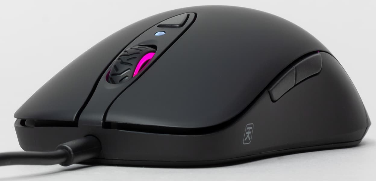 Симметричный формфактор мышки одинаково удобен для правшей и левшей. Симметрия проявляется и в кнопках: на обоих боках находится по паре дополнительных программируемых клавишей. Функции этих и всех остальных переназначаются в управляющей программе.