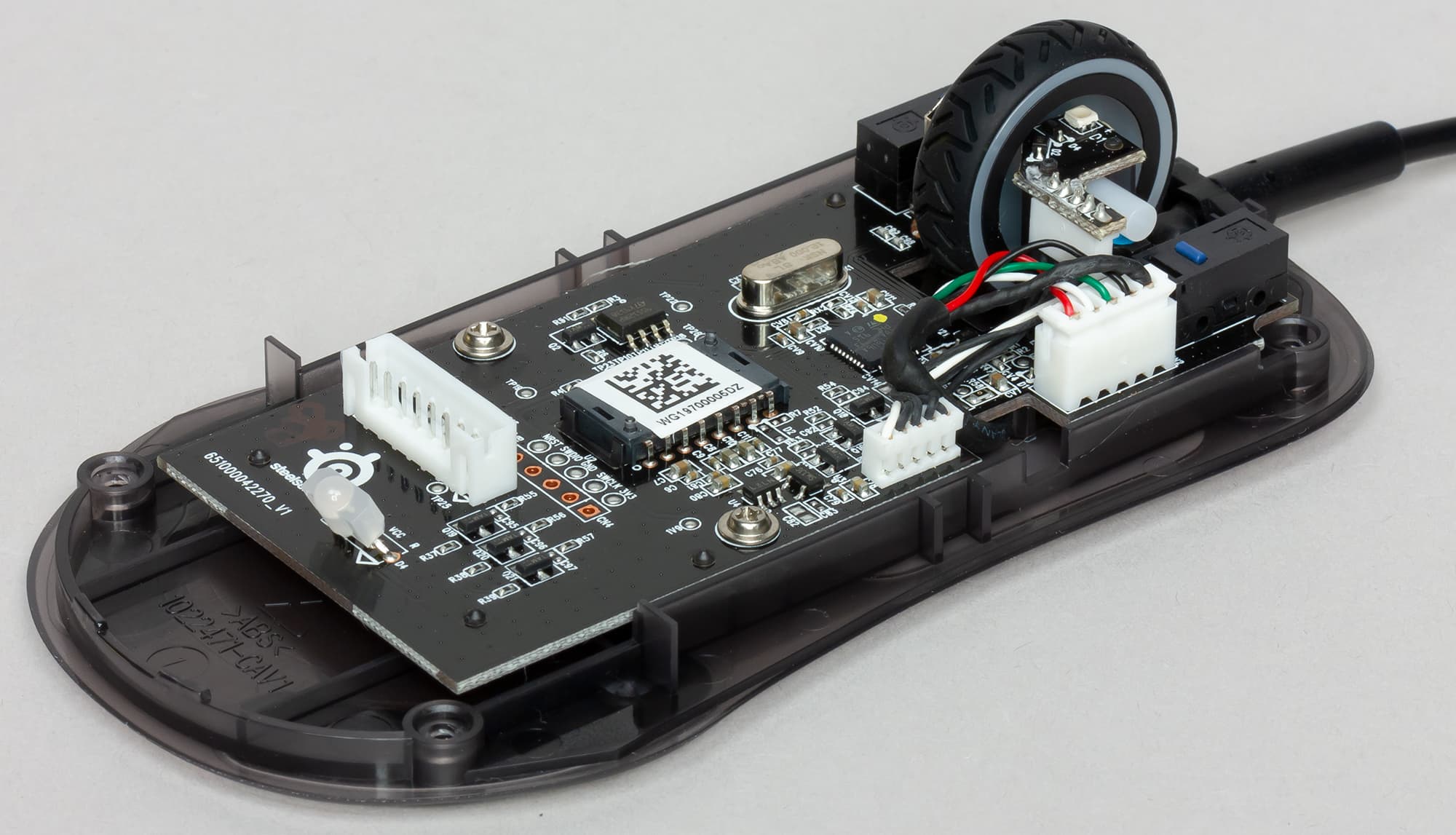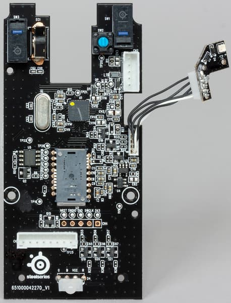 Компонентная база содержит высококачественные составляющие. Например, примененный здесь оптический датчик TrueMove Pro разработан компанией PixArt эксклюзивно для продукции SteelSeries. Заявляется его высочайшая точность работы на любой поверхности. И это не пустые слова, в чем мы убедились во время игры. Ой, тестирования.