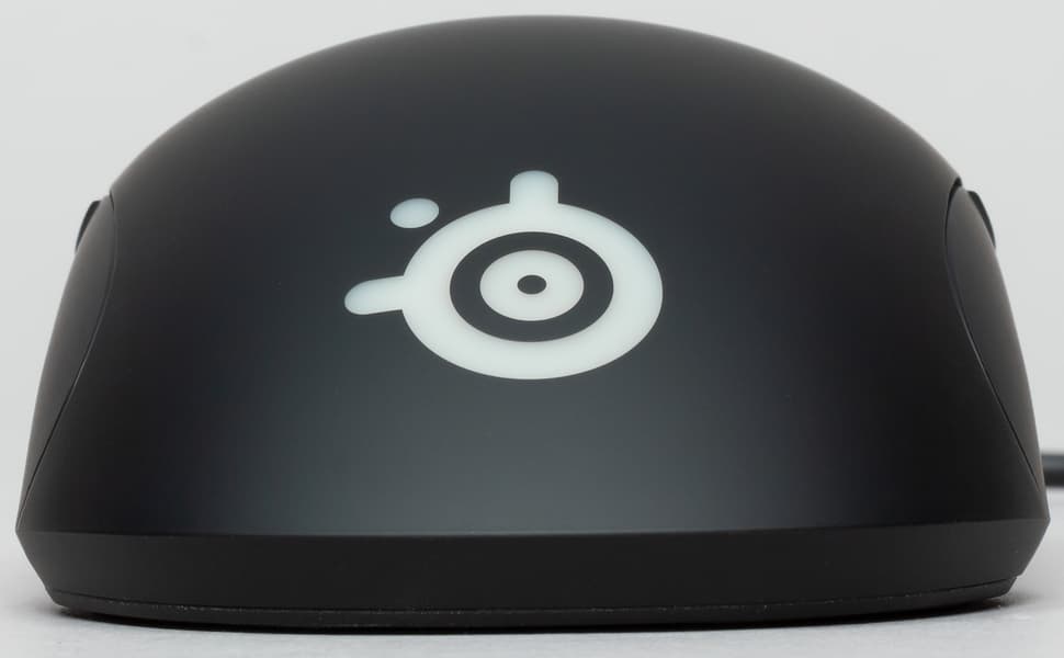 Прозрачный матовый логотип SteelSeries с подсветкой врезан в корпус настолько аккуратно, что кажется, будто он составляет с ним единое целое, без видимых и ощущаемых границ. Высота корпуса составляет 38 мм — наверное, это оптимальный рост для игровых мышек.