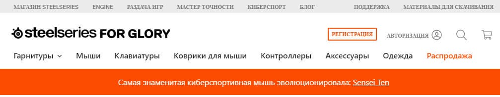 Здесь, в «шапке» сайта, можно видеть оповещение о выпуске новой версии «самой знаменитой киберспортивной» мыши. Надо же, какое совпадение. Именно эту мышку мы и собираемся рассмотреть в статье.