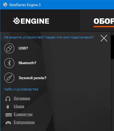 Кстати, на случай, если по каким-то причинам пользователь не обнаружил подключенное устройство или имеет другие вопросы, из левой части программного окна выдвигается особый модуль с полезной информацией. Каждая ссылка в нем ведет на страничку базы знаний, где наверняка отыщется ответ.