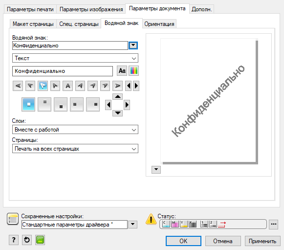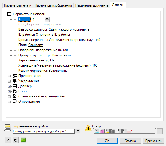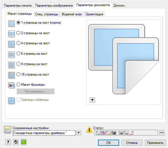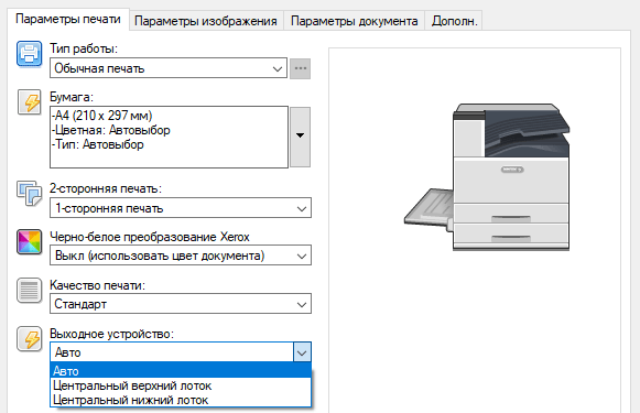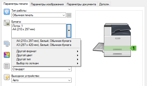 Есть также настройка регистрации бумаги (пункт Положение изображения), которая позволит добиться точной установки полей по краям листа, причем для каждого установленного лотка.