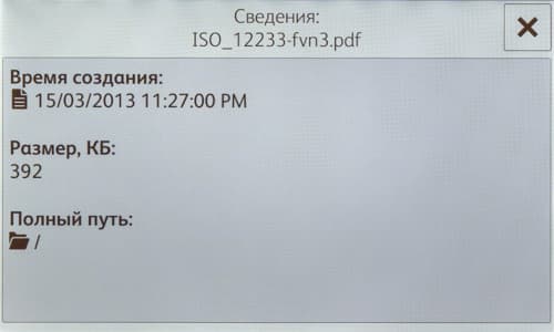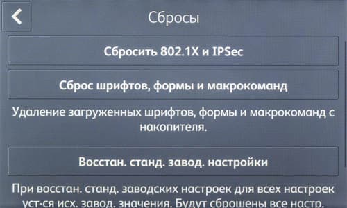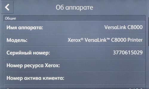 «Об аппарате»: можно посмотреть сведения об устройстве, включая IP-адрес при сетевом подключении, и распечатать отчеты.