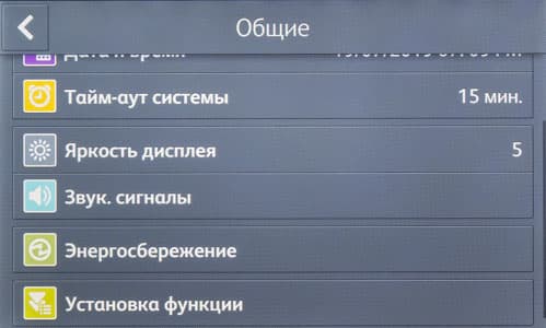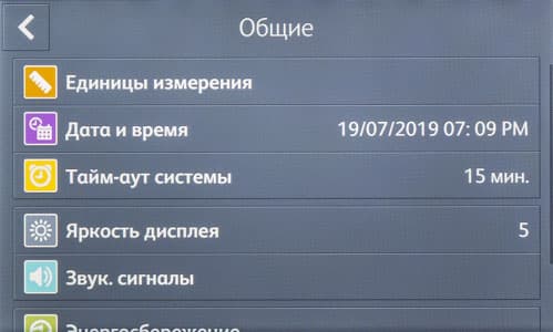 Экран настроек, открывающийся по кнопке «Аппарат», содержит доступ к основным установкам и сервисным функциям.