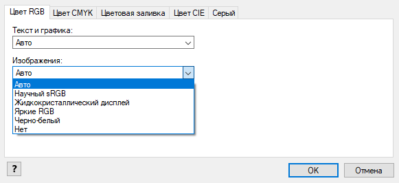 | Установки цвета | Черновая печать выключена | Черновая печать включена | ||