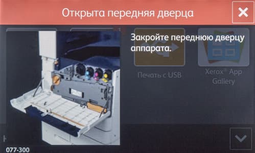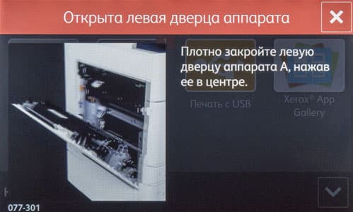 Если открыты какие-то крышки, на ЖК-экране отображаются сообщения с анимацией, показывающей, что именно надо сделать.