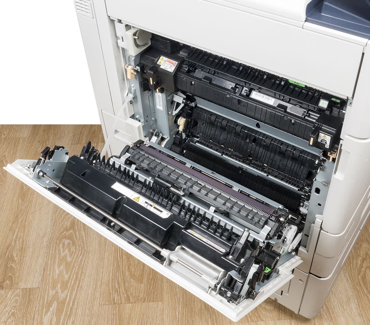 Обходной лоток крепится к крышке, закрывающей тракт прохождения бумаги. Открывать ее придется для извлечения застрявших листов, а также при обслуживании или замене некоторых узлов (ролик переноса, фьюзер).