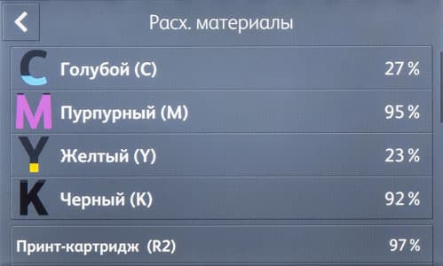 Список расходных материалов вполне привычный для цветного лазерного или светодиодного принтера: