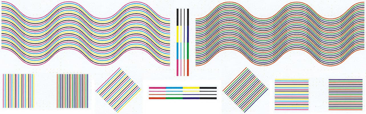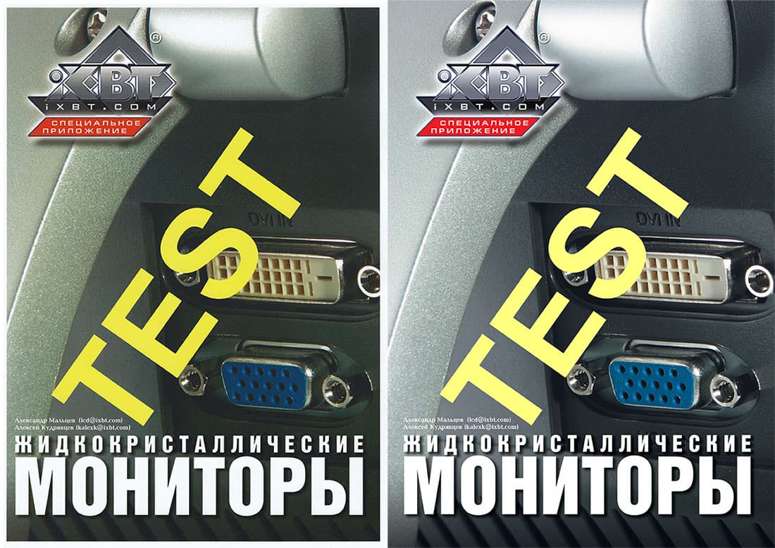 Перейдем к более существенным моментам: в данном случае каких-либо полос на сплошных заливках нет, сами заливки плотные, цвета насыщенные (пожалуй, даже немного чересчур), текст читается очень хорошо. Насыщенность можно убавить имеющимися настройками — тогда и желтоватый оттенок серого станет менее заметным, а вот полосы, если они есть, корректировать обычно нечем.