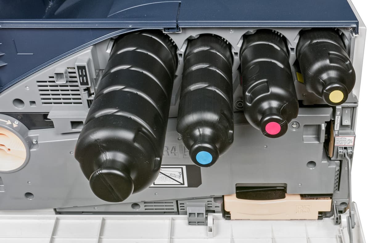 - тонер-картриджи стандартной емкости: черный на 12600 страниц, цветные CMY на 7600 страниц каждый;