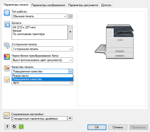 Смена установки качества, а также печать на бумаге Xerox Colotech+ не дают заметных невооруженным глазом изменений.
