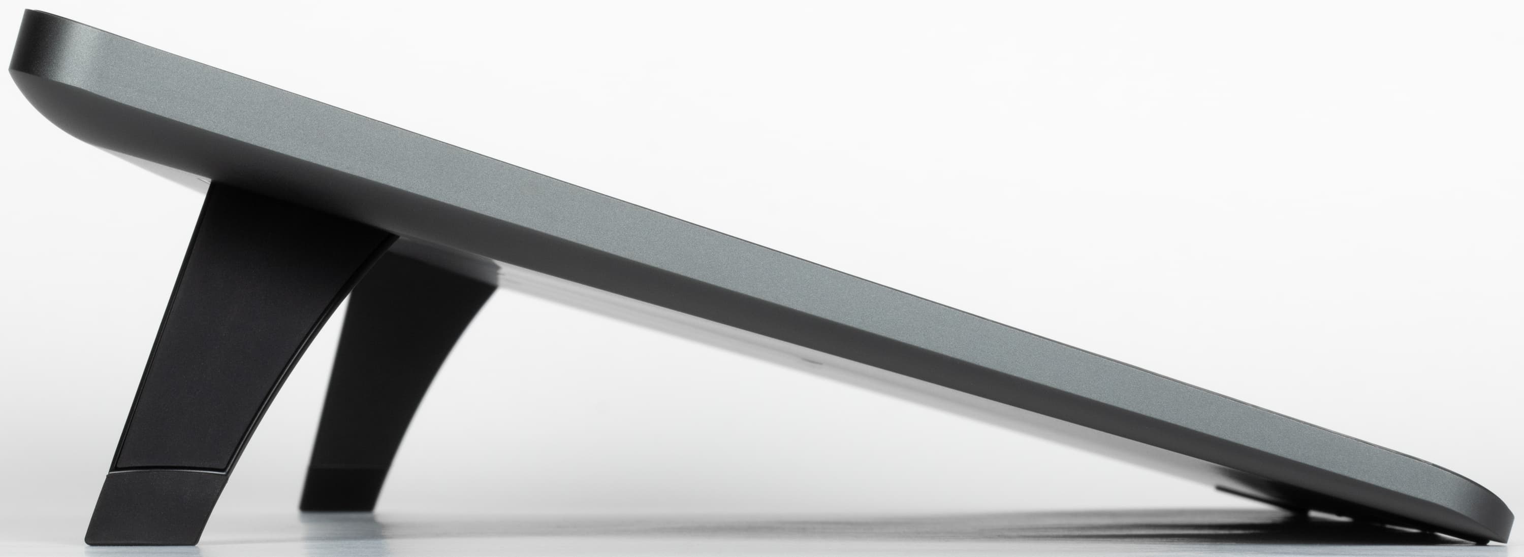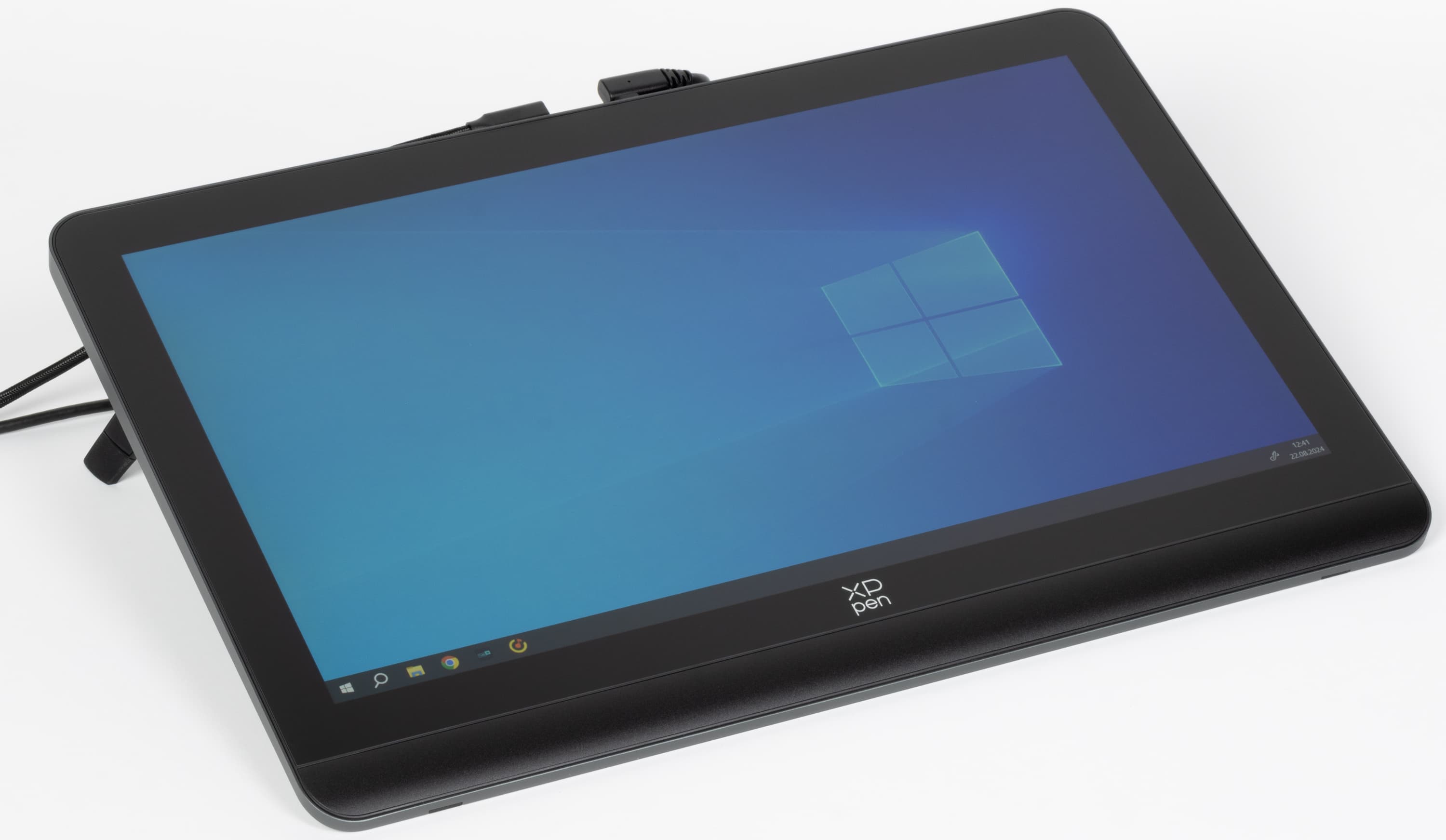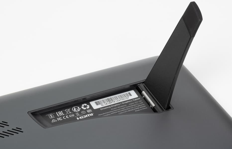 В рабочем положении (при откидывании) опоры приподнимают монитор над поверхностью стола. При этом его рабочая плоскость образует со столешницей угол 19°. Изменить угол наклона нельзя, что несколько странно для недешевого устройства. У XPPen в ассортименте есть подставка ACS18 с углом наклона, регулируемым от 10 до 85 градусов, но за этот аксессуар придется дополнительно заплатить еще несколько тысяч рублей.