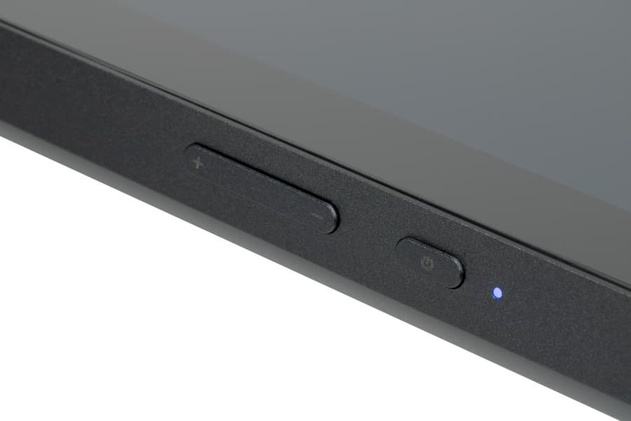 На верхней боковой панели сосредоточены органы управления (каковых всего два): кнопка включения питания и «качелька» для увеличения/уменьшения яркости.