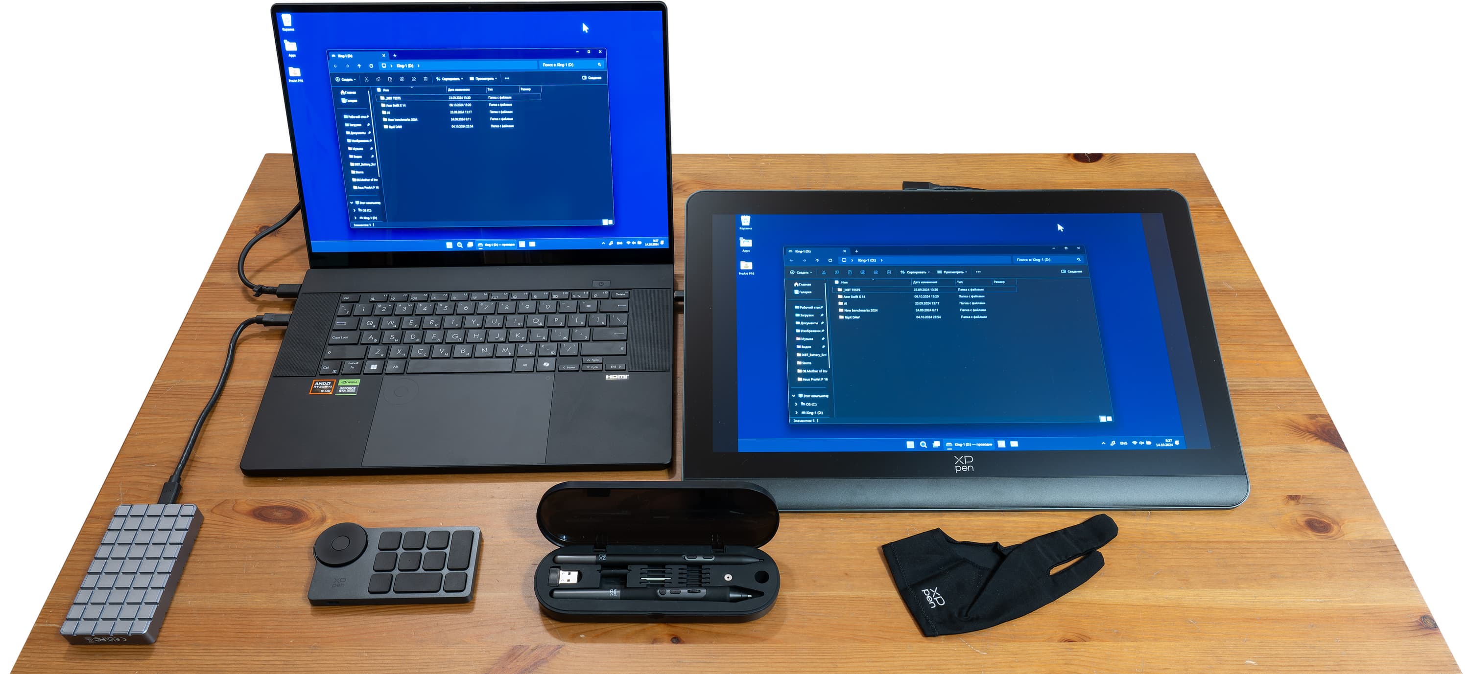 Новый интерактивный монитор XPPen Artist Pro хорош своими спецификациями, удобной периферией и комфортными в использовании стилусами двух разных видов. Он позволяет в несколько раз сократить затраты времени при выполнении рутинных операций, связанных с удалением дефектов изображений. Остается неясным выбор производителем разрешения 4K для экрана и весьма скромный вариант установки на двух складных ножках. Если иметь в виду традиционную работу (как с планшетом), то 4K — это слишком много (а цена такого решения весьма высока). Если же подразумевать возможность использовать устройство как дополнительный монитор, когда высокое разрешение очень желательно, то героя нашего обзора невозможно установить в привычном для компьютерного монитора положении, только «полулежа». Универсальная же стойка, которая дает возможность зафиксировать экран под разными углами к плоскости столешницы, приобретается в случае моделей XPPen отдельно, увеличивая и без того немалую стоимость решения.