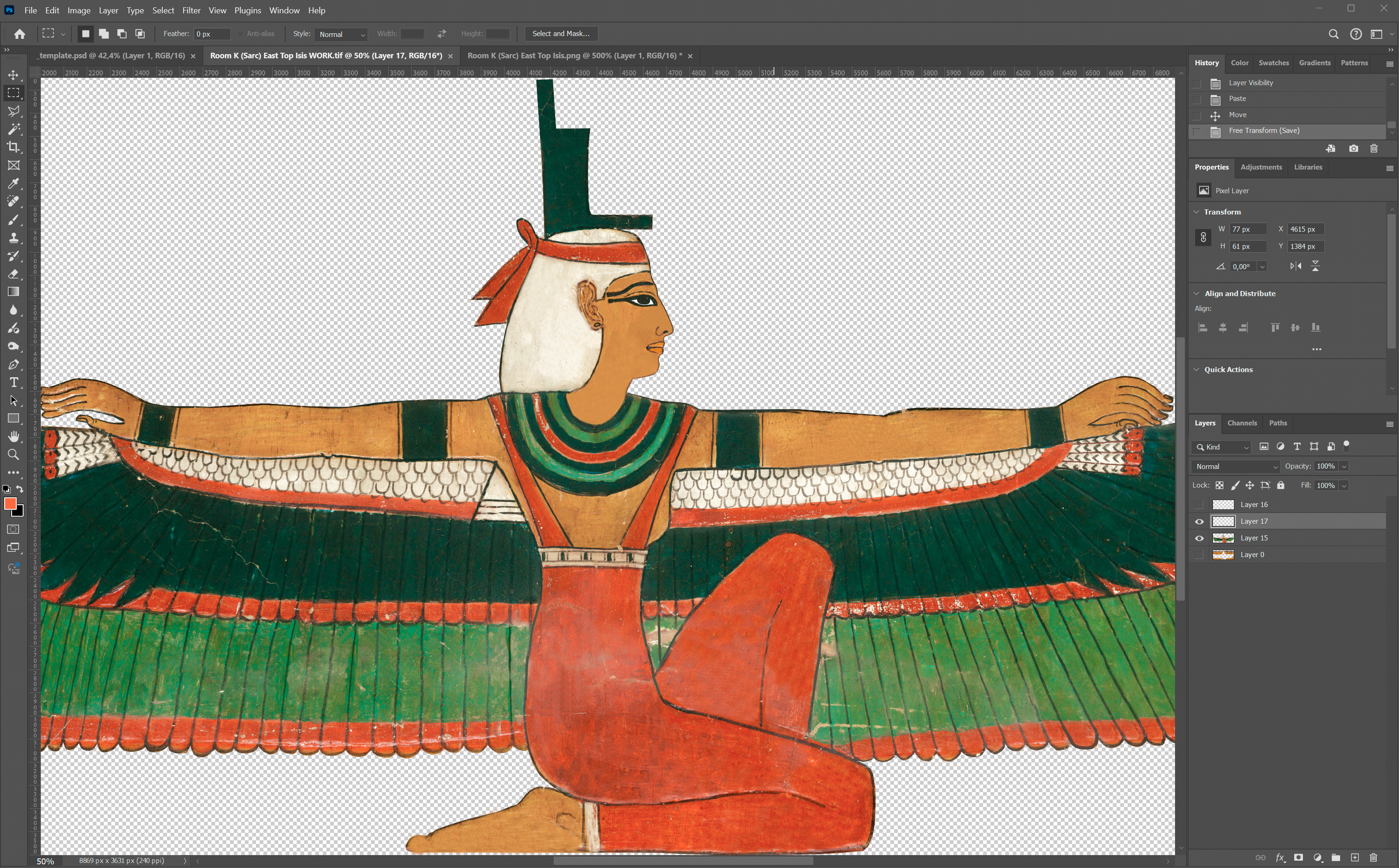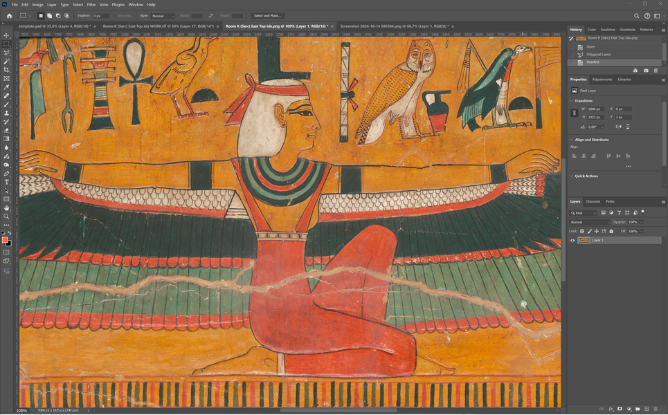 Для монографии о религиозных воззрениях Древнего Египта требовалось создать высококачественное изображение богини Исиды, оберегающей усопшего царя своими распростертыми крыльями в Дуате, пространстве мертвых. Одно из лучших изображений крылатой Исиды расположено в столице Нового царства, известной под греческим названием Фивы (древнеегипетский Уасет, современный Луксор), в погребальной камере гробницы царя Сети I в Долине царей (KV17), на западном берегу Нила. Беда в том, что KV17 сильно пострадала от разных разрушительных факторов, и на некоторых ее стенах возникли трещины, повредившие фрески и рельефы.