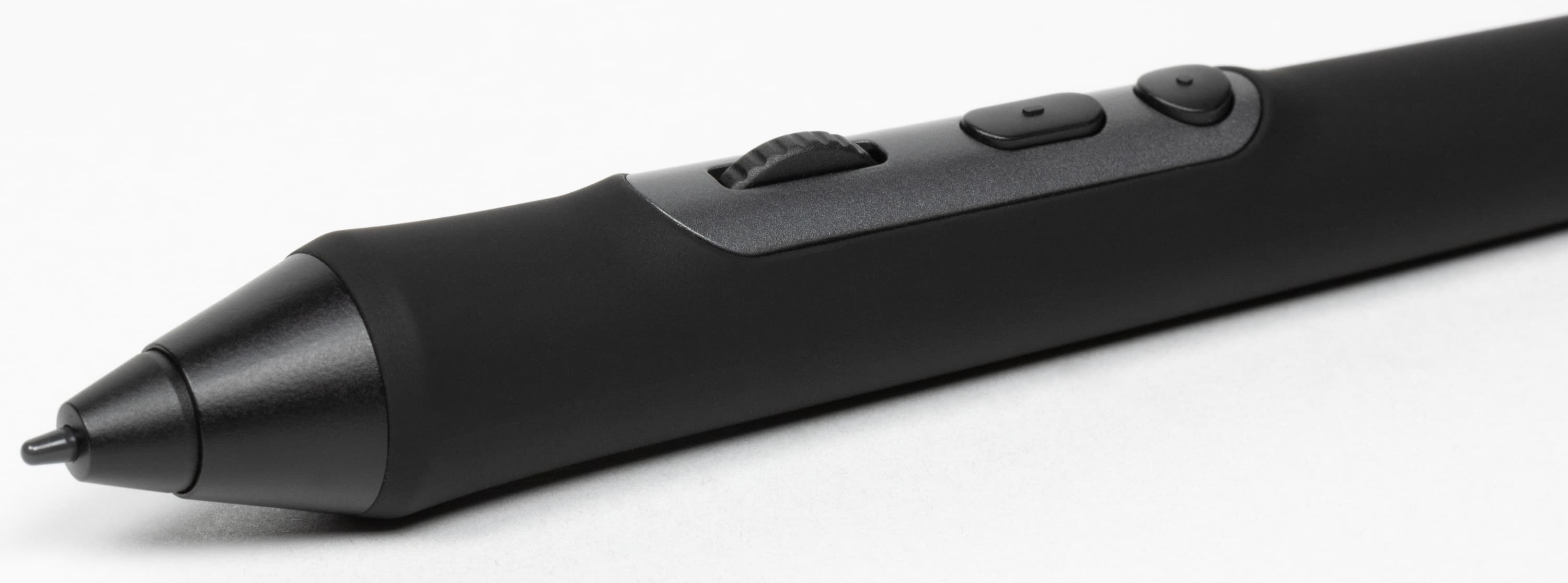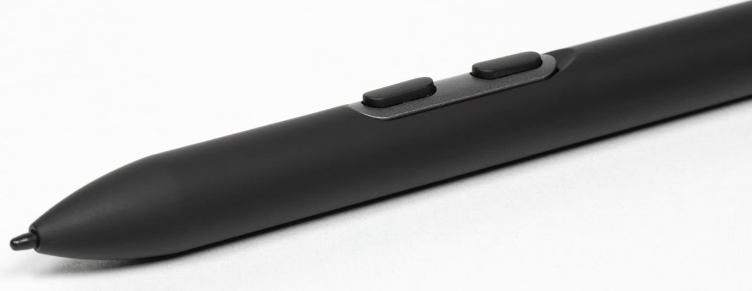 Второй стилус более тонкий, он снабжен только двумя кнопками и по своей форме и размерам гораздо ближе к классическому инструменту для письма и рисования — карандашу или перу.