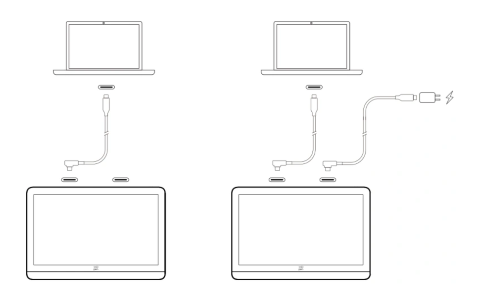 На схеме, предложенной выше, слева представлен вариант, когда порт USB Type-C ноутбука (настольного ПК, мини-ПК) поддерживает функцию питания внешних устройств (PowerDelivery). Справа предлагается схема с отдельным подключением к розетке посредством комплектного адаптера питания.
