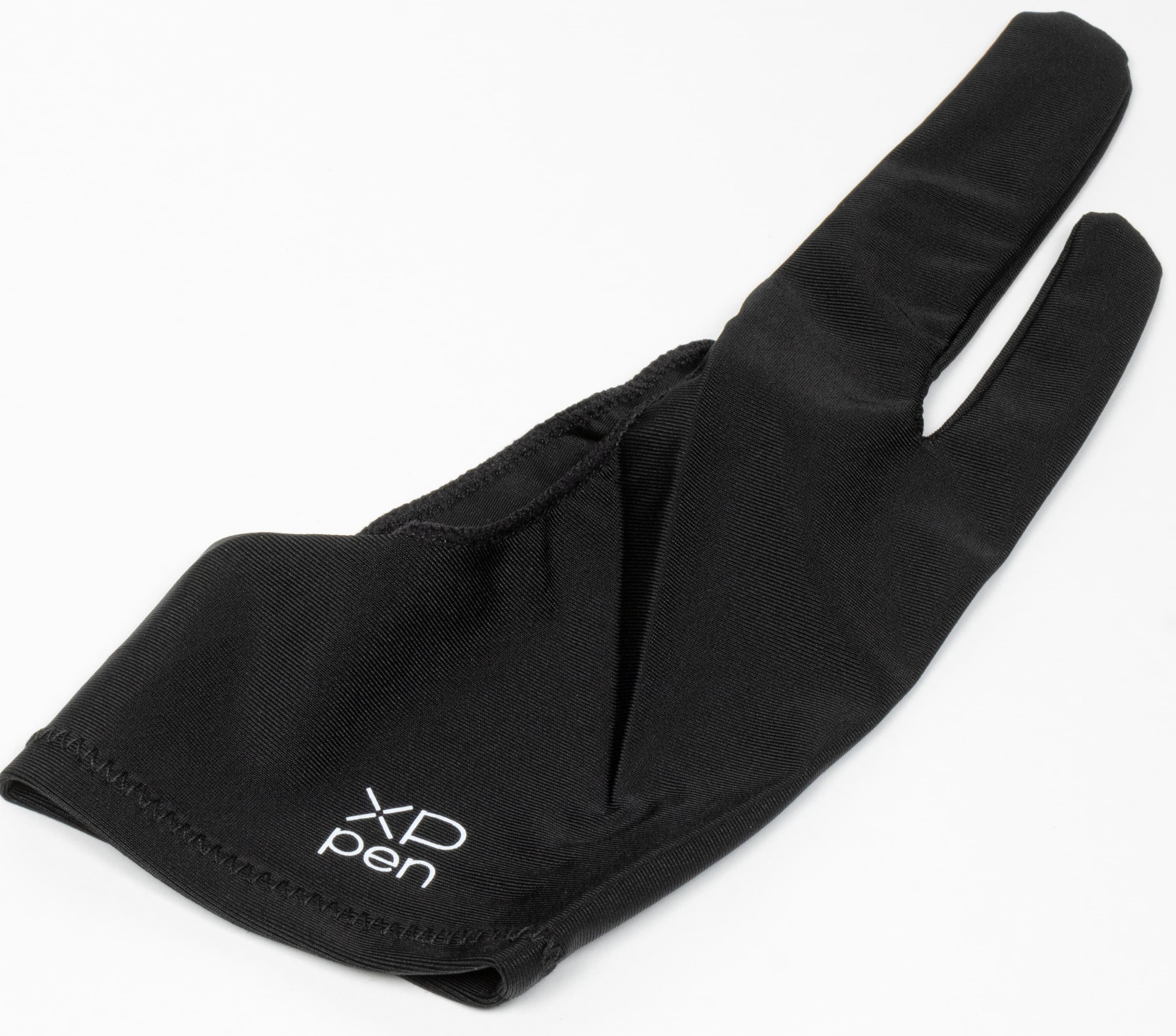 Для обеспечения максимального комфорта при работе производитель приложил к XPPen Artist Pro 19 еще и специальную перчатку из лайкры, которая при надевании покрывает мизинец и безымянный палец рабочей руки (что левой, что правой — все едино, но у левши логотип XPPen окажется не на тыльной, а на ладонной поверхности). Этот аксессуар был давным-давно позаимствован у игроков в бильярд. Можно много и долго спорить по поводу того, насколько перчатка нужна для работы с интерактивным монитором в наши дни, когда его поверхность не отзывается на прикосновение кожи. Но согласно опыту, удобнее работать именно в перчатке, поскольку это, как минимум, облегчает скольжение рабочей руки по плоскости экрана.